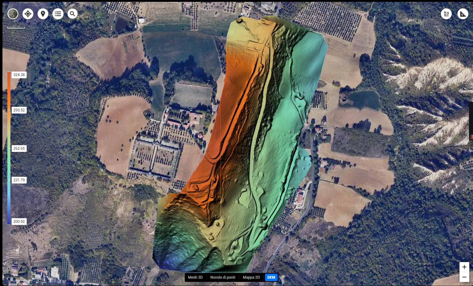 Con l’aerofotogrammetria l’unico output possibile è il DSM (Digital Surface Model), mentre con il rilievo Lidar è possibile ottenere anche il DEM (Digital Elevation Model), che ci restituisce milioni di punti a terra, anche sotto la vegetazione.